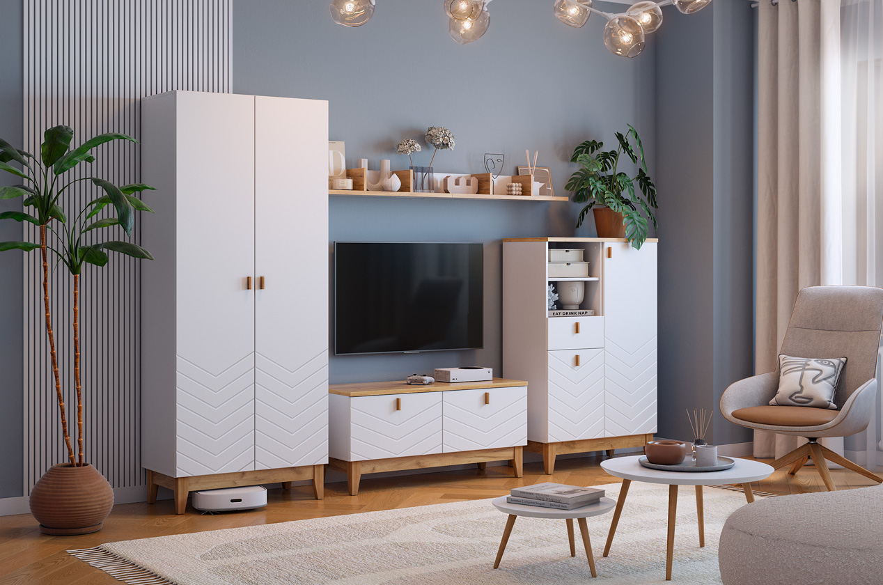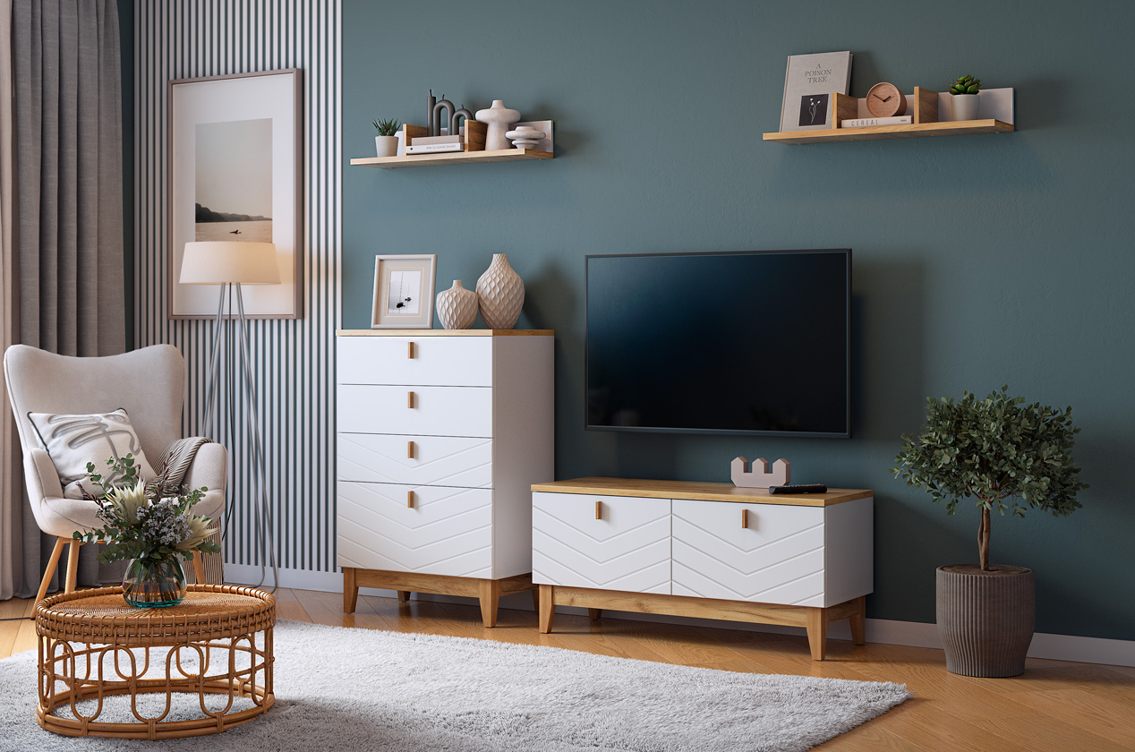 Комод сочетает в себе лаконичный скандинавский дизайн и многоуровневую систему хранения. Благодаря комбинации выкатных ящиков и скрытого отсека он помогает организовать хранение самых разных вещей, поддерживая порядок и эстетику в спальне, гостиной или прихожей.