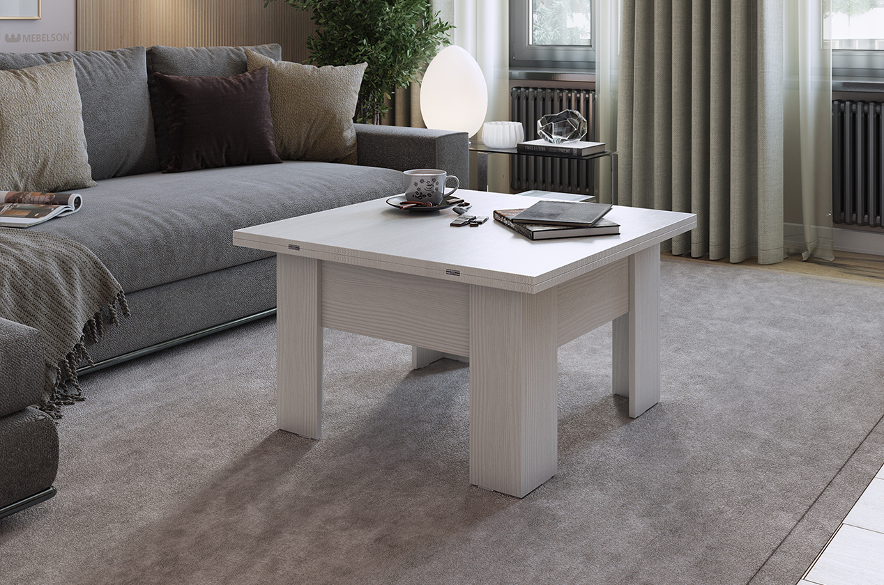 Покажите гостям фокус – пусть удивятся, как легко можно превратить журнальный стол в обеденный! Небольшой стол «Секрет» как по волшебству раскладывается и может разместить за собой до 6 человек.