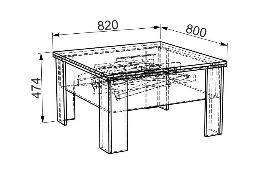 Размер стола в сложенном положении 820х800х470мм.
