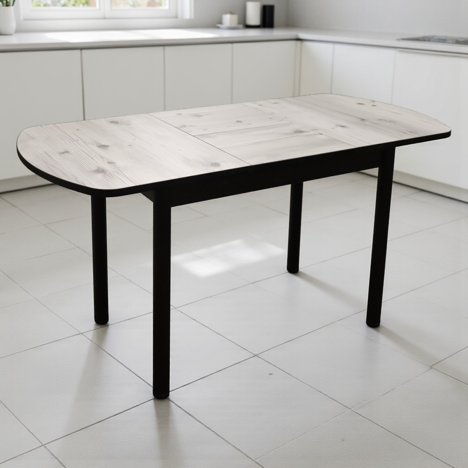 —Стол Фаворит 1100(+400)*700 Пластик Бискайск.сосна,бабочка(B5)/ЛДСП бодега темн+опоры(черн)