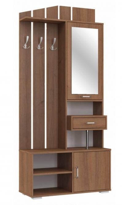 В такие наборы входят вертикальные деревянные ламели, на которых на внешней части зафиксированы крючки. Есть вертикальное зеркало разного размера. Удобно, что в набор включена тумбочка с верхней частью для сидения, а также выдвижные шкафы, калошницы. В некоторых наборах предусмотрены полки для аксессуаров и головных уборов. В определенных коллекциях есть небольшой вертикальный шкаф, открытые и закрытые шкафы на несколько уровней. Самые верхние полки либо литые, либо же на небольших ножках; этот прием добавляет легкости всей конструкции.